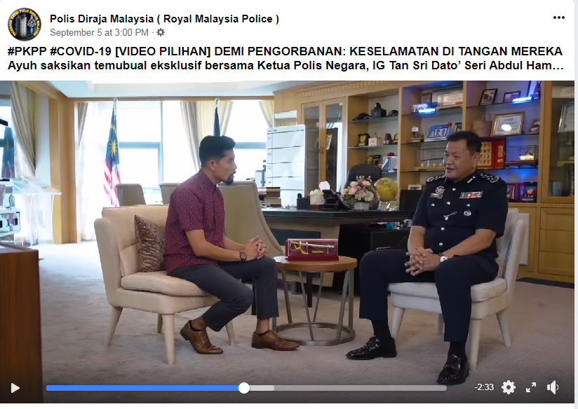 Ayuh saksikan temubual eksklusif bersama Ketua Polis Negara, IG Tan Sri Dato’ Seri Abdul Hamid Bador dalam program Demi Pengorbanan bersama Ustaz Don Daniyal Don Biyajid, dengan kupasan tajuk “Keselamatan Di Tangan Mereka“ yang telah disiarkan di saluran Astro Oasis pada 2 September lalu.