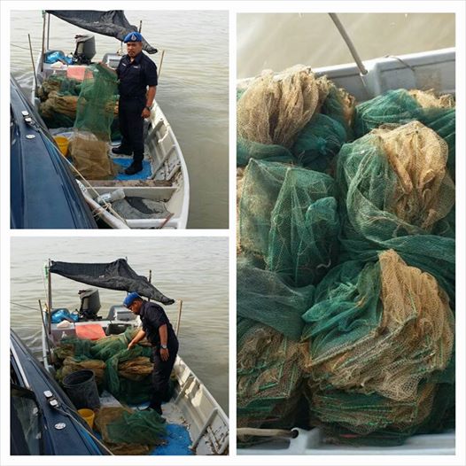 Pemeriksaan lanjut berjaya menemui sejumlah 42 peralatan pukat dan bubu bam-bam yang digunakan bagi aktiviti penangkapan ikan di perairan berkenaan.