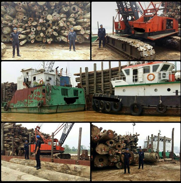 ACP Kalai berkata, antara barang rampasan tersebut adalah peralatan pemunggahan kayu balak termasuklah sebuah kapal 'foresline', 'barge bonspeed', 'tug boat' dan kren.