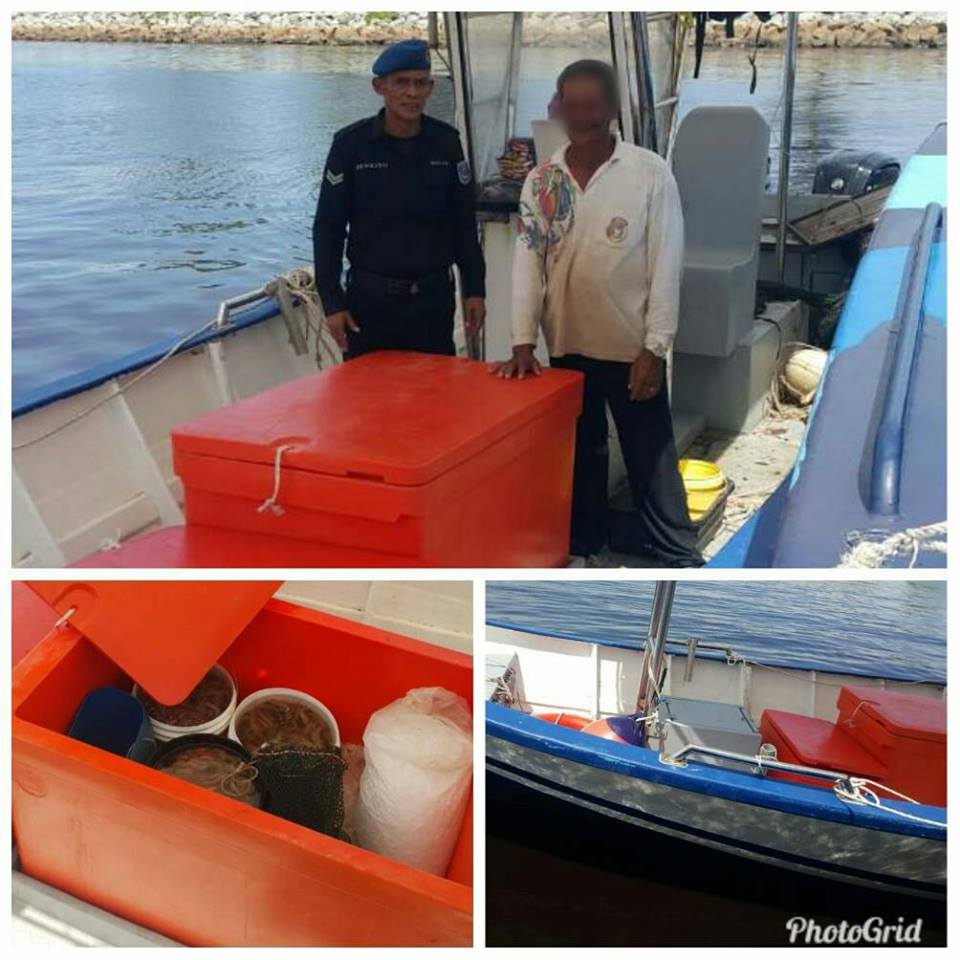 Menurutnya, seorang lelaki warga tempatan berusia 63 tahun ditahan bersama hasil tangkapan kira-kira 35 kilogram ikan dan udang.