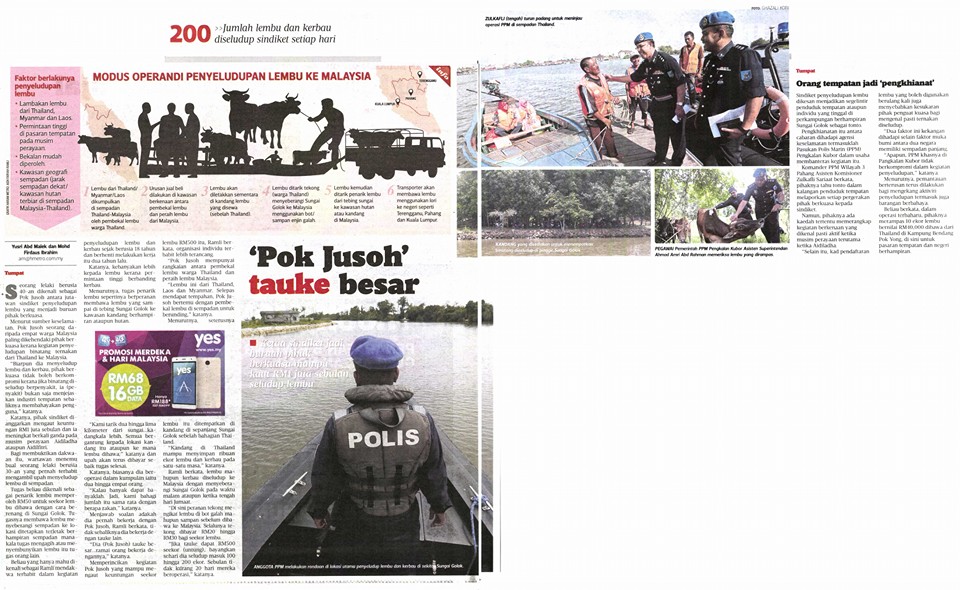 Seorang lelaki berusia 40-an dikenali sebagai Pak Jusoh antara jutawan sindiket penyeludupan lembu yang menjadi buruan pihak bcrkuasa. Pak Jusoh seorang daripada empat warga Malaysia paling dikehendaki pihak berkuasa kerana kegiatan penyeludupan binatang ternakan dari Thailand ke Malaysia.