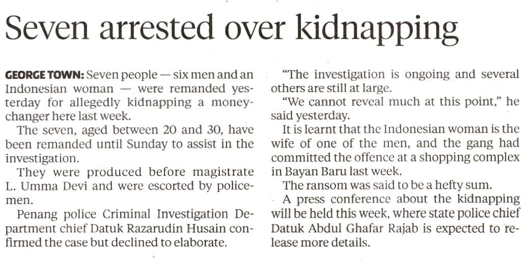 Seven people, six men and an Indonesian woman were remanded yesterday for allegedly kidnapping a moneychanger here last week.