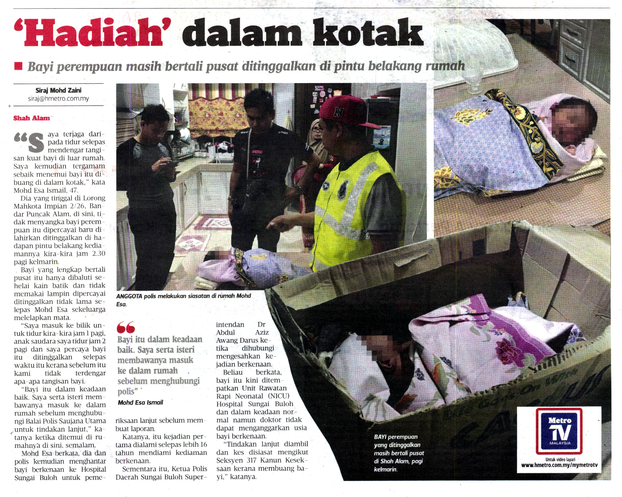 BUANG BAYI DALAM KOTAK: POLIS BURU INDIVIDU BERTANGGUNGJAWAB