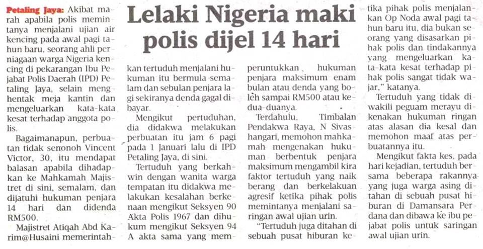 LELAKI NIGERIA MAKI POLIS DIJEL 14 HARI