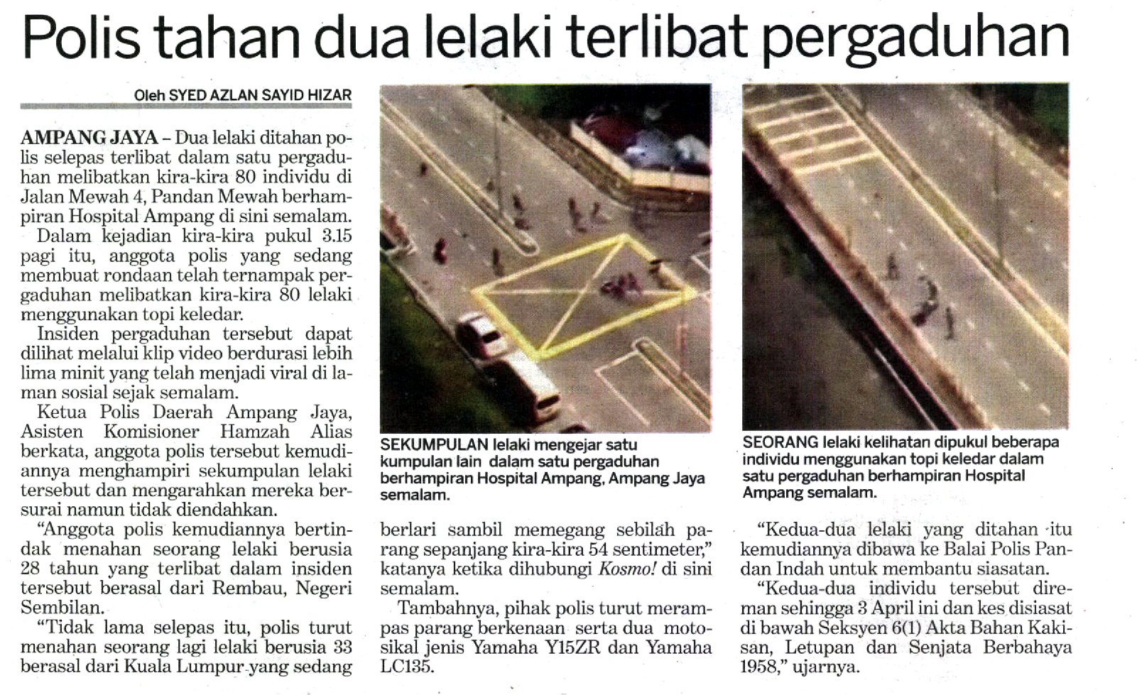 Akibatnya, pihak polis menahan dua individu yang terlibat, merampas sebilah parang panjang dan dua buah motosikal yang digunakan suspek.