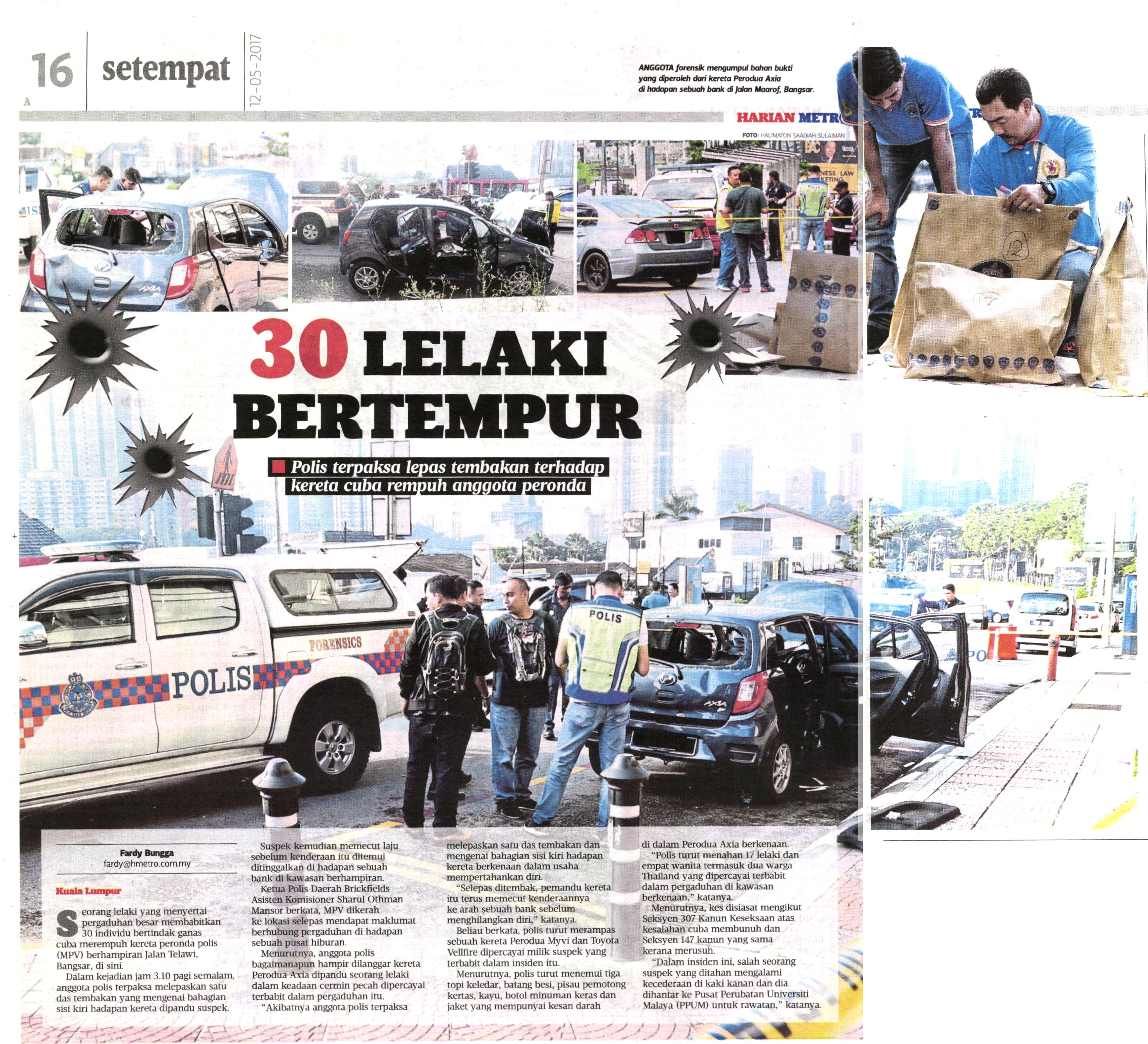 Pemandu kereta tersebut bagaimanapun dapat melarikan diri meninggalkan kenderaanya yang penuh dengan barang-barang kes pergaduhan.