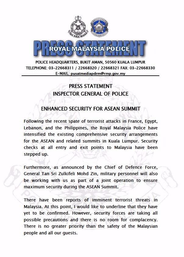 SIARAN MEDIA: ENHANCED SECURITY FOR ASEAN SUMMIT