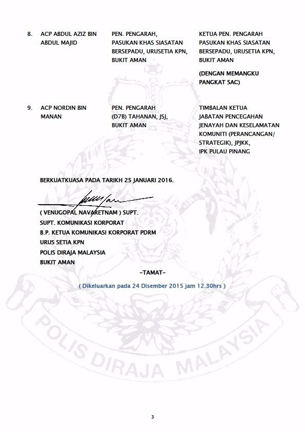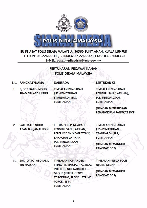 SIARAN MEDIA: PERTUKARAN PEGAWAI KANAN 24 DIS 2015