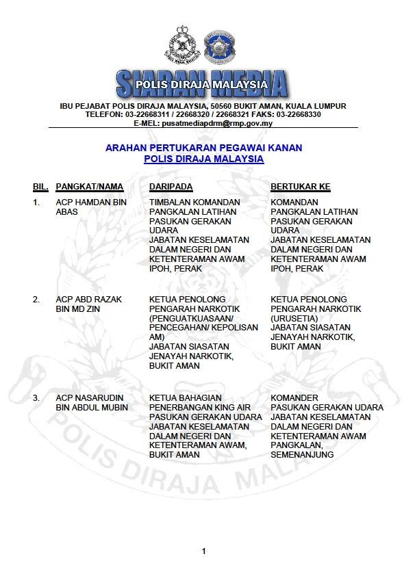 ARAHAN PERTUKARAN PEGAWAI KANAN POLIS DIRAJA MALAYSIA