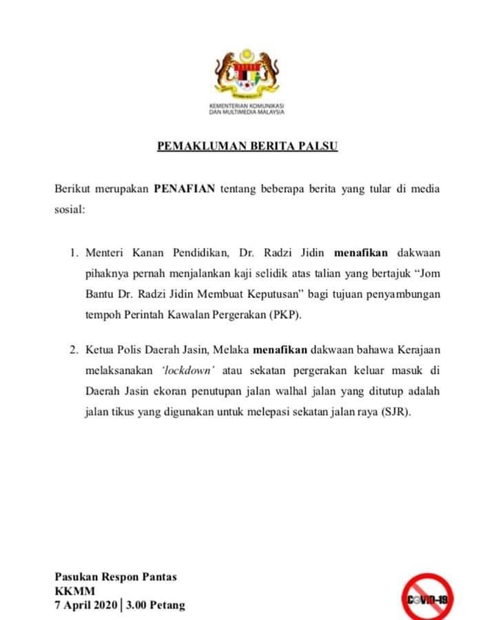 #COVID 19: PENAFIAN BERITA PALSU DI MEDIA SOSIAL