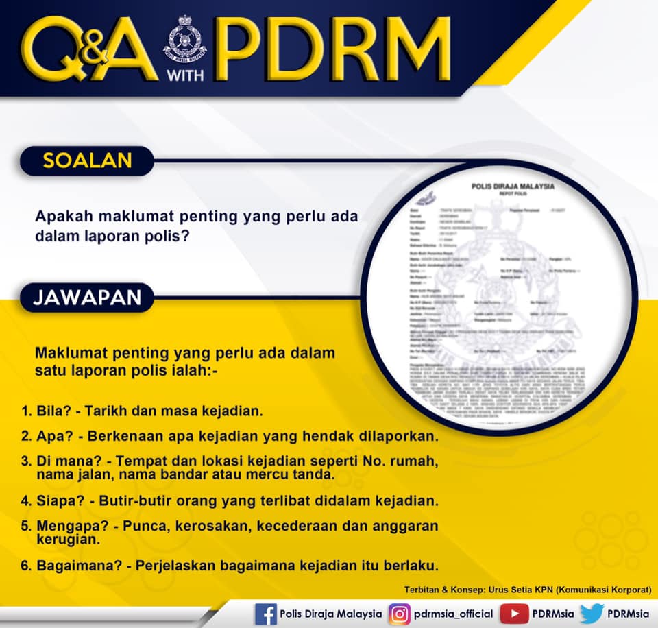 #Q&AWithPDRM MAKLUMAT PENTING YANG PERLU ADA DALAM LAPORAN POLIS
