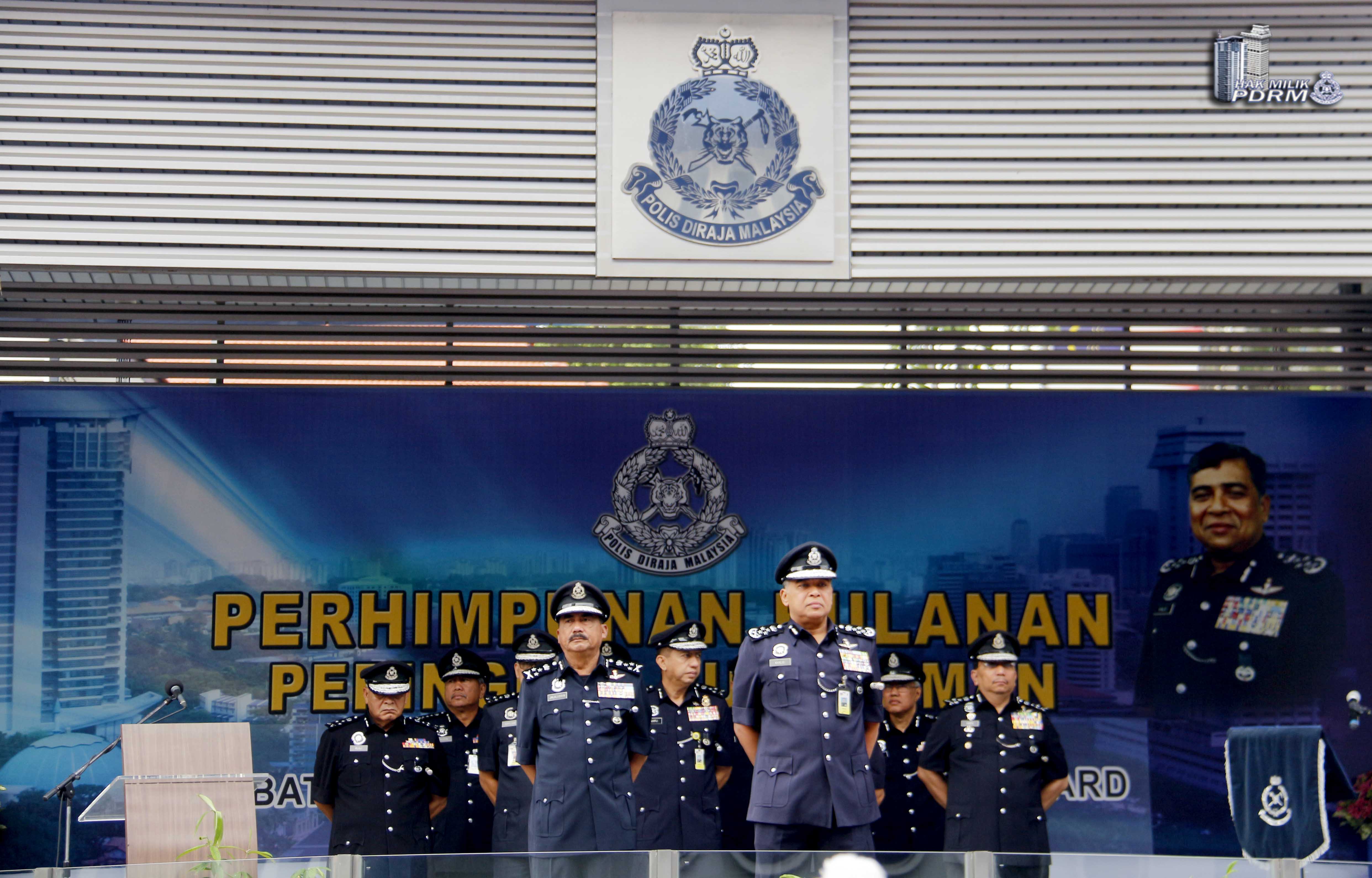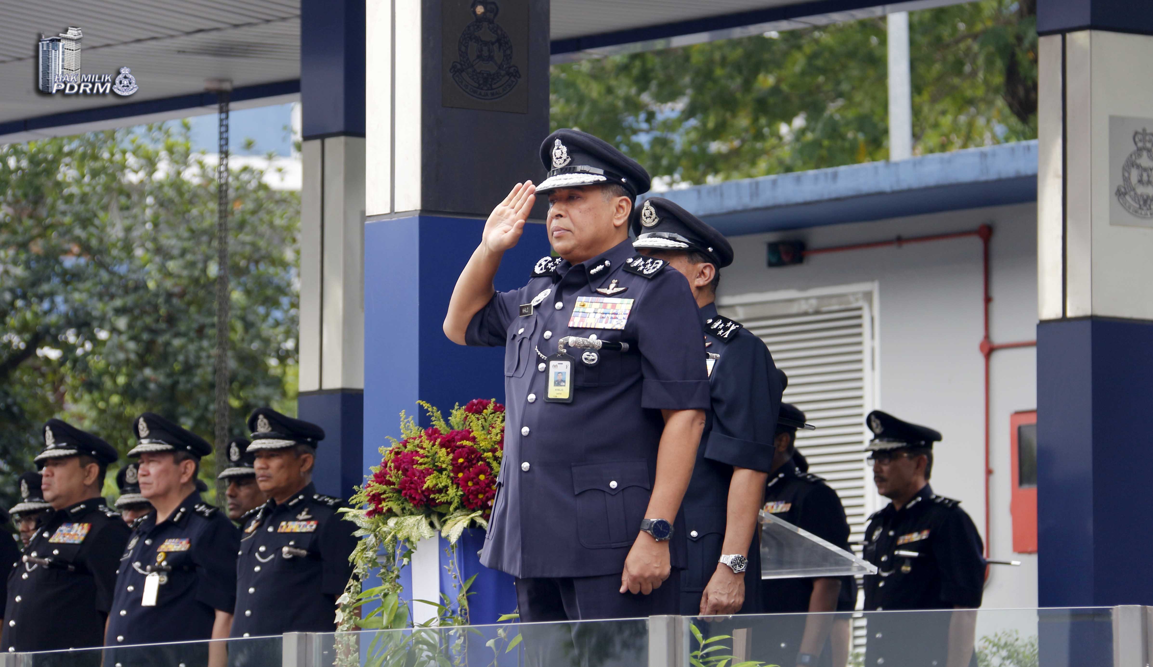 Perhimpunan yang menghimpunkan semua jabatan yang terdiri daripada pegawai kanan dan anggota polis dan pegawai awam dari Ibu Pejabat Polis Bukit Aman ini telah disempurnakan oleh Ketua Polis Negara, Inspektor Jeneral Tan Sri Dato’ Sri Khalid Abu Bakar.