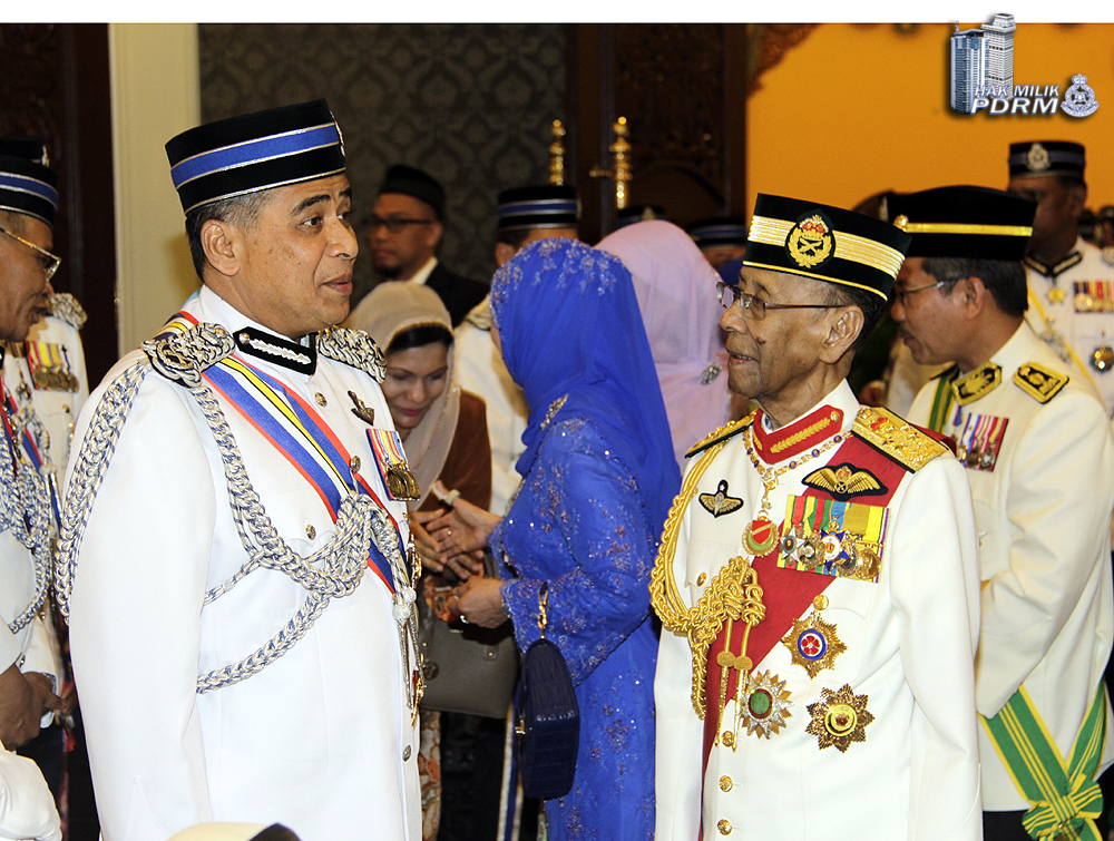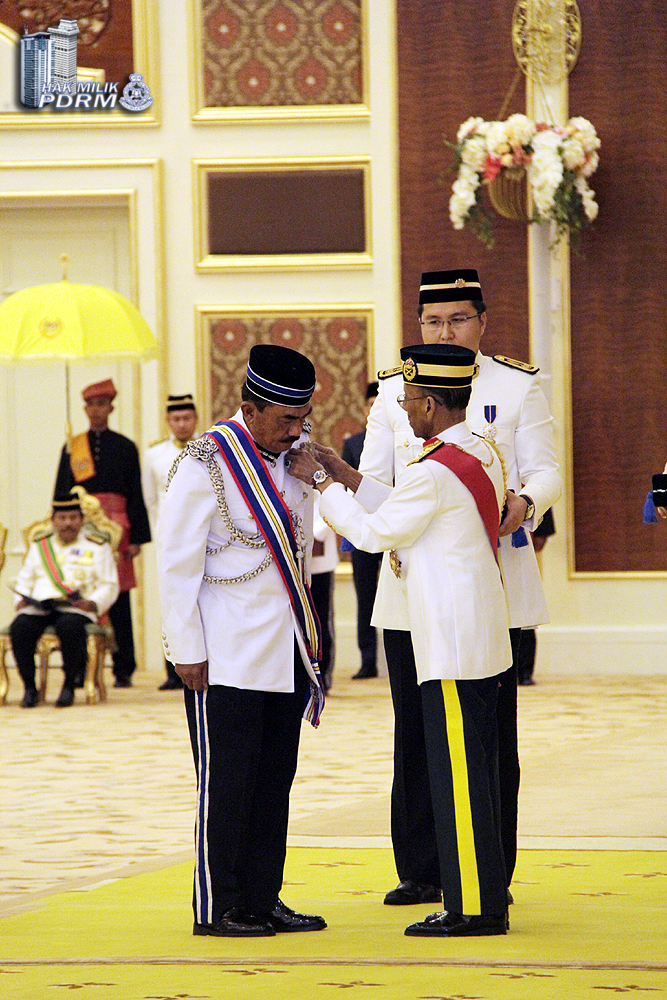 Seri Paduka Baginda Yang di-Pertuan Agong XIV Almu’tasimu Billahi Muhibbuddin Tuanku Alhaj Abdul Halim Mu’adzam Shah ibni Almarhum Sultan Badlishah bersama Ketua Polis Negara, Tan Sri Dato’ Sri Khalid Abu Bakar