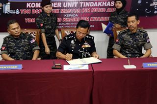 Sesi serah terima tugas Komander Unit Tindakhas diantara Datuk Mastor Mohd Ariff kepada ACP Mohd Khairi Khairuddin