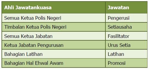 Jawatankuasa EKSA PDRM Peringkat Jabatan adalah seperti berikut:-